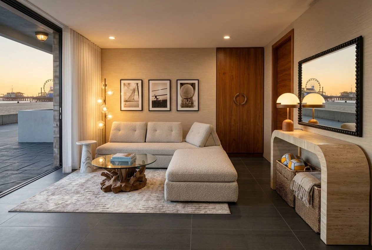 I specialize in interior design and finish selection, including space planning, material palettes, furniture, lighting, and visual styling.